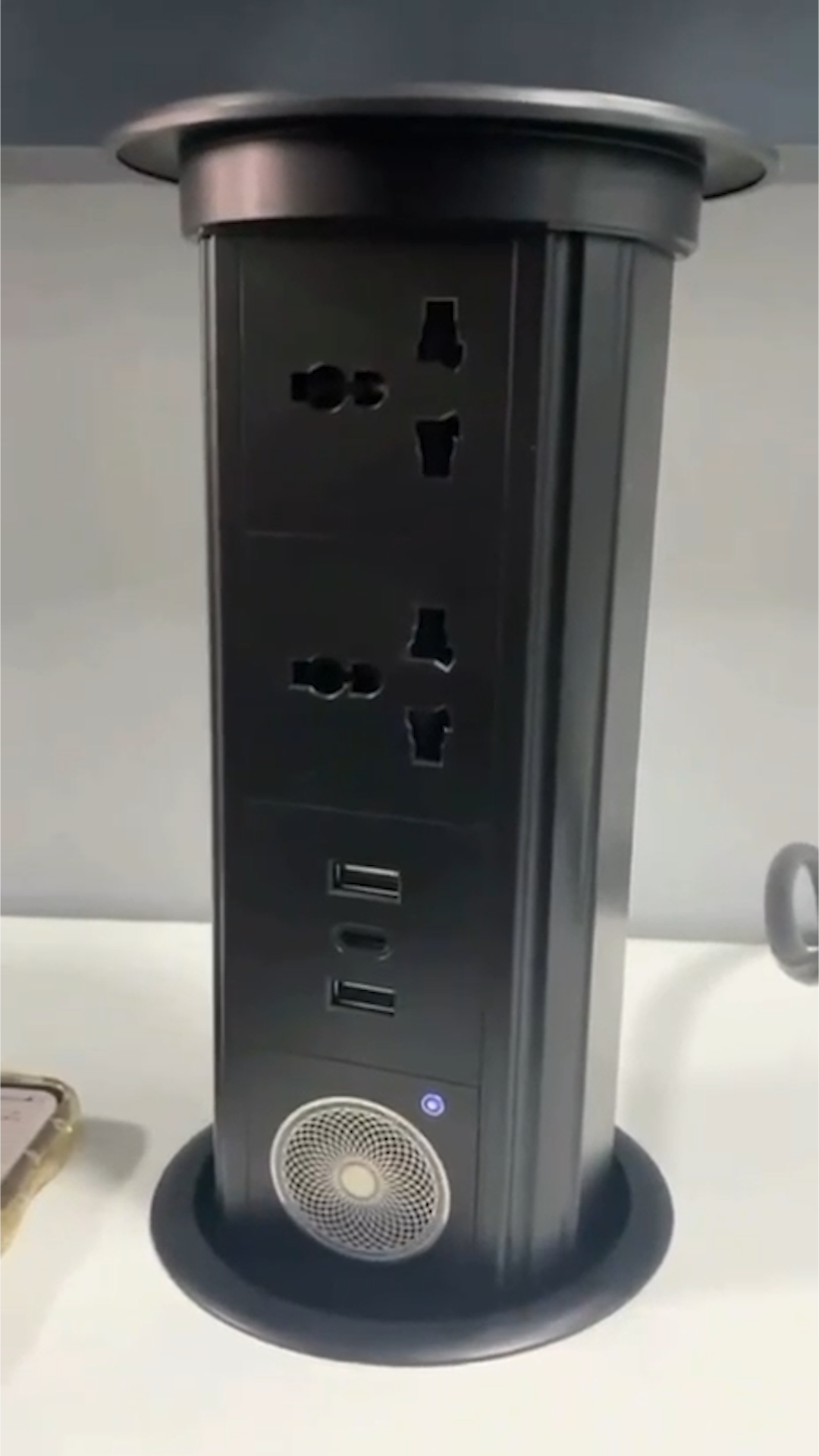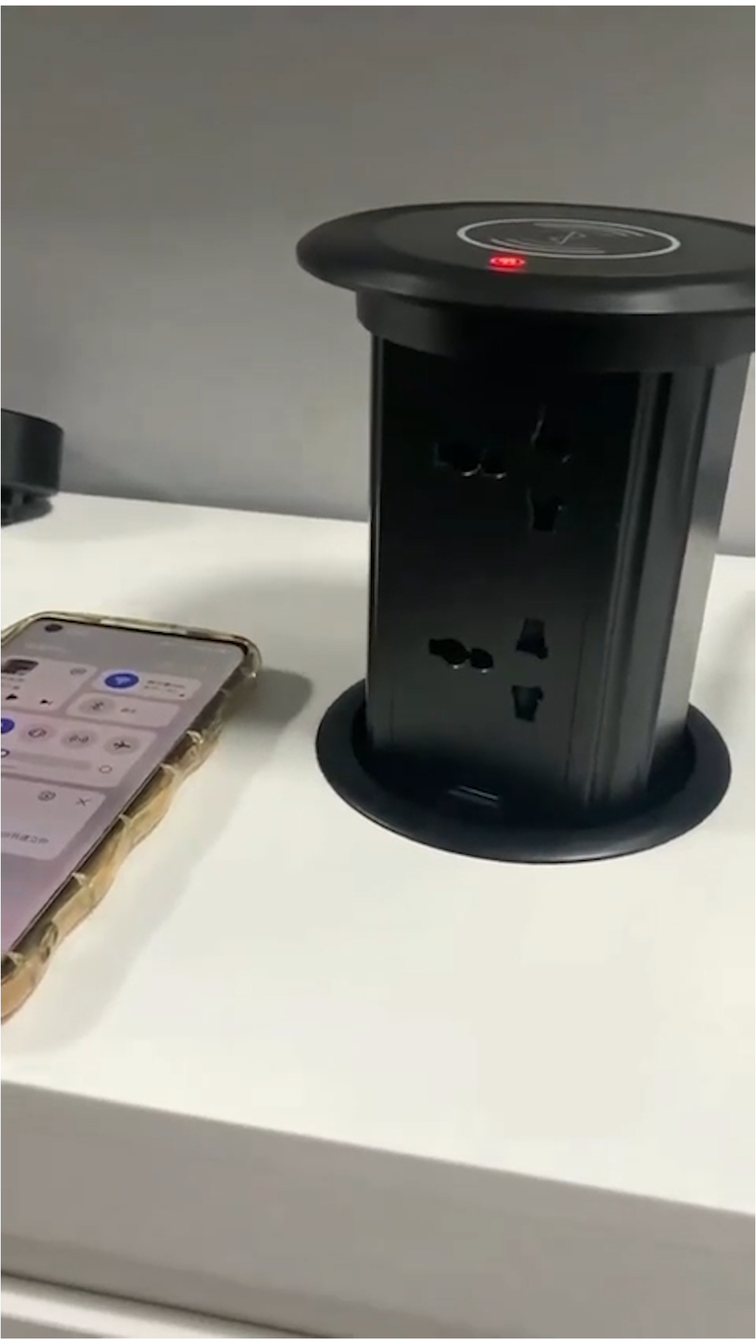 Parámetro Detalle Nombre del producto ORBIX — Enchufe emergente eléctrico Método de elevación Elevación eléctrica con sensor táctil Voltaje 110V – 250V / 50-60Hz Potencia nominal 2500W Intensidad nominal 10–15A Salida USB 5V — 2.1A Carga inalámbrica 5V — 2.1A / frecuencia estable (85% eficiencia) Material del panel Vidrio templado Material del cuerpo Aleación de aluminio aeronáutico Apertura requerida 3.9 in (≈10 cm) Protección IP44 Resistencia a salpicaduras cuando está cerrado 📦 Contenido del paquete